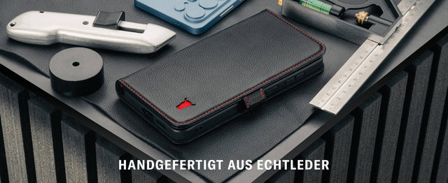 Diese Hülle wird in Handarbeit aus hochwertigem Rindsleder gefertigt. Das verwendete Vollnarbenleder stammt aus Gerbereien in den USA und wird nur minimal behandelt, um die natürlichen Eigenschaften und das Aussehen des Leders zu erhalten.